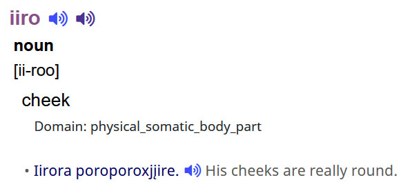Audio may be played by clicking the speaker icons within the entry. Generally, each entry has a male and female audio for each Ho-Chunk entry.